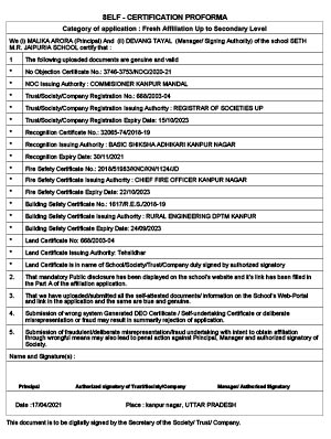 DEO Self Declaration Certificate